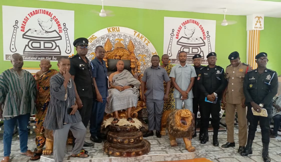 The Omanhene of the Abease Traditional Area, His Royal Majesty Obrenpong Kru Takyi II, who is also the Vice President of the Bono East Region House of Chiefs, has pledged to collaborate with the Pru West District Security Council (DISEC) to flush out the activities of nomadic herdsmen in the Abease Traditional Area.