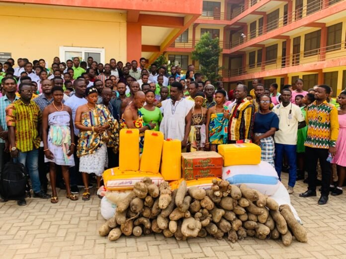 The Abease Traditional Council in the Pru West District of the Bono East Region, under the distinguished leadership of His Royal Majesty Obrempong Kru Takyi II, Omanhene of Abease and Vice President of the Bono East Regional House of Chiefs, has demonstrated practical commitment to education by donating assorted food items to Abeaseman Senior High School to support the feeding of its boarding students.