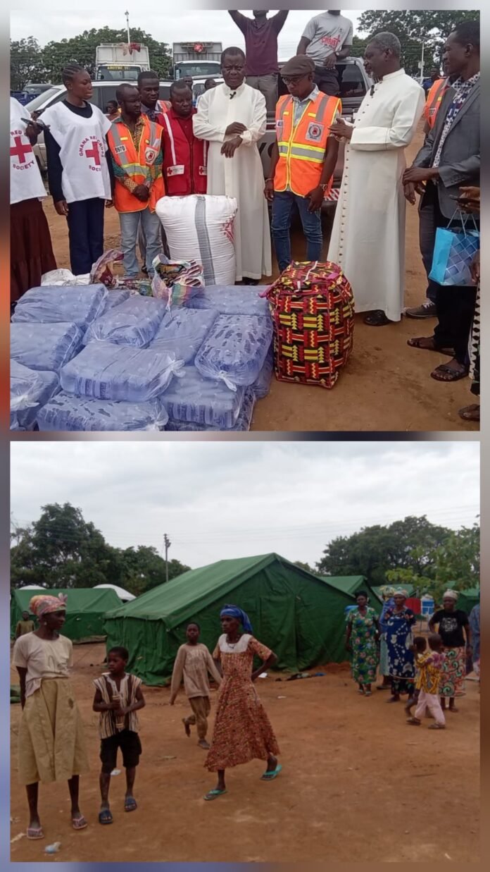 The Damongo Catholic Diocese responded swiftly to humanitarian needs arising from recent conflict in Gbinyiri, delivering essential relief supplies to affected residents who have sought refuge at the Sawla District Police Station.