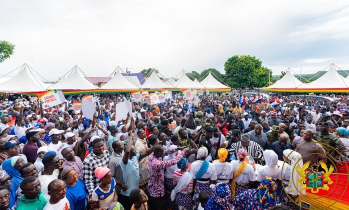 Signals of joy and appreciation drew thousands of ecstatic crowds to flood the streets of Damongo when the President of the Republic, Nana Addo Dankwa Akufo-Addo, visited the area on Monday, October 14, 2024, as part of a two-day visit of the Northern, North East and Savanna regions.