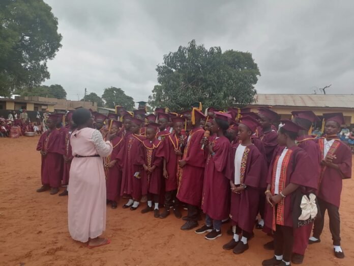 The New Life Preparatory School in Damongo marked a significant milestone on Wednesday, July 23, 2025, with its maiden graduation ceremony. 39 KG2 students and 59 Basic 6 pupils making a total graduant population of 95 pupils graduated successfully. The ceremony, which took place at the school’s forecourt, was a momentous occasion, marking the transition of the pupils from Basic 6 to Junior High School 1.