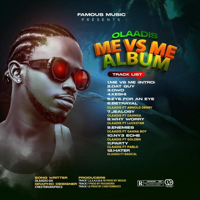 Professionally, Olaadis delivered this enthralling catalog called, Gbee Gbee that got his music fans erected and yearning for more. The singer finally got every music lover entertained with his “Me vs Me” album. This project is a 12-track album featuring; Daanga, Pablo Arnol Deri, Gaanaboy, Luckststar, Golden 4G, and Radical.