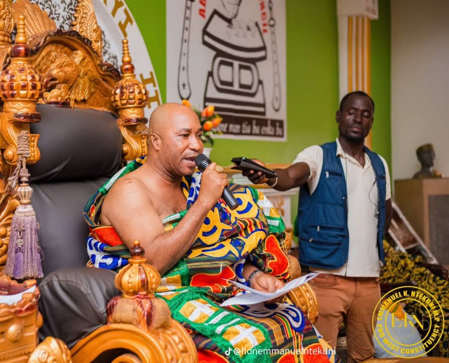 He made the appeal on Tuesday, August 26, 2025, when the Bono East Regional Minister, Hon. Francis Owusu Antwi, paid a courtesy call on him and Nananom at the Abease Traditional Council Palace. The Minister was accompanied by Hon. Samuel Agyapong, District Chief Executive for Pru West, Hon. Emmanuel Kofi Ntekuni, Member of Parliament for Pru West, other government officials, and executives of the National Democratic Congress (NDC).
