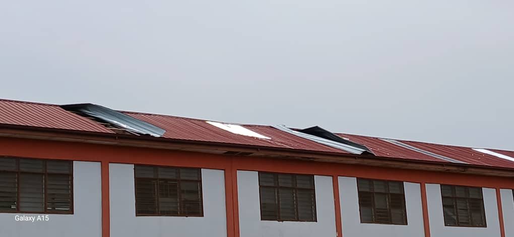 The storm, which lasted for over an hour, ripped off the roof of a section of the classroom block, rendering the affected classrooms unusable should school resumes shortly. The school kitchen was also severely damaged, this will disrupt the preparation of meals for students, when school resumes on 23rd April as scheduled.