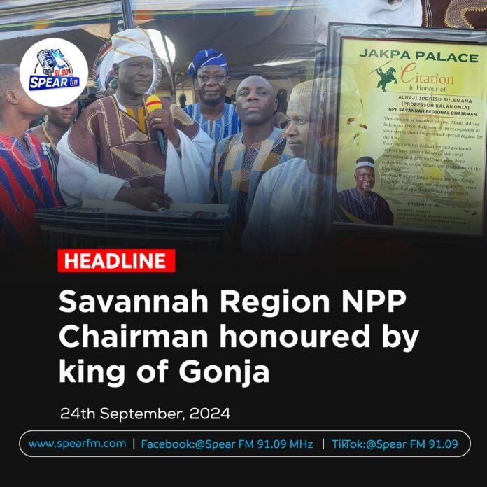 The Savannah Region Chairman of the New Patriotic Party (NPP), Alhaji Iddrisu Sulemana has been honoured by the King and Overlord of the Gonja Kingdom, His Royal Majesty, Yagbonwura Bikunuto Jewu Soale I.