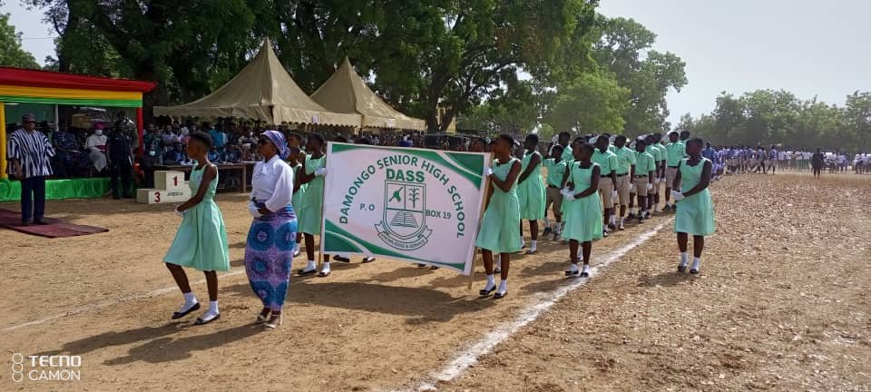 The 67th Independence day parade in the Savannah Region comprises personnel drawn form the 155 Armored Regiment of the Ghana Armed Forces, the Ghana Police Service, the Ghana Immigration Service, and the Ghana National Fire Service together with the Damongo Senior High School army Cadet, Ndewura Jakpa Senior High School Fire Cadet, Damongo Town Boys Scout, and 33 schools from Savannah Region comprising 10 KG, 10 Primary Schools, 10 Junior High School and 3 Senior High School